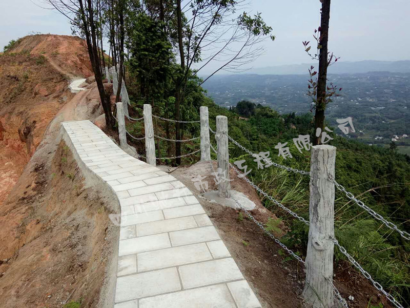 2017年3月~5月,我公司承接的宜賓江安縣江安鎮(zhèn)插旗山游山道工程《鏈條式塑石仿木欄桿項目》!