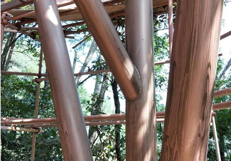 鋼結構上仿木紋漆,就是在普通鋼結構上做出仿木紋效果的一種工藝。這種工藝技術彌補了國內外很多工程難題。很多場所,比如:公園柱子,護欄,車庫出入口鋼結構,這些地方可能有時我們為了環保起見想做成真實的仿腐木效果,但考慮其成本高,安全性和保質期等因素,不想使用。這時,這個鋼結構木紋漆就派上用場了,這種材料要低于普通防腐木成本好幾倍,而且保個二十年都沒有問題,而且耐用,美觀,安全大方。