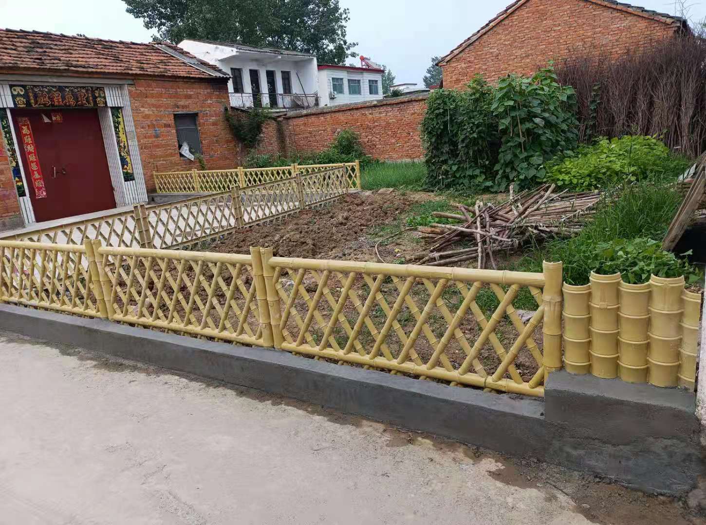 3、仿竹護欄安裝完工后,確認好護欄是否穩固。水平線是否垂直。確認完畢后,油漆工將勾縫處補上油漆就可令人感覺很美觀了。